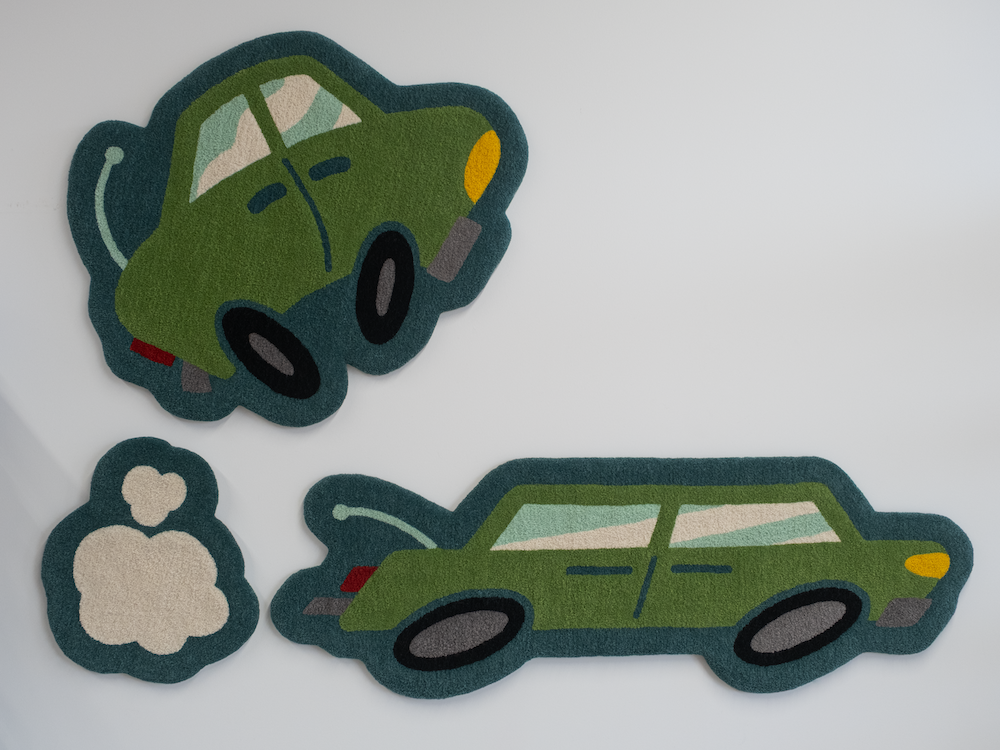 Craig Miller is an emerging artist based in Des Moines, Iowa. Originally trained as a designer, his graphic sensibility has since collided with a lifelong fascination for fiber artwork, giving way to a vibrant and tactile art practice. Through a combination of his bold illustration style and soft mediums like rug tufting, chain stitch embroidery, and sewing, his work aims to be a charming reminder that the small things which make up the world around us—the commonplace objects, the incidental interactions, the brushes with nature—are a source of magic, and the secret to a beautiful life. Using the skills learned from his time spent studying graphic design and animation he explores the forms of our everyday environment, exaggerating shapes and materials, playing with iconic representations, and personifying the inanimate to create a sense of character, humor, and whimsy.